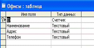 Структура таблицы «Офисы»: