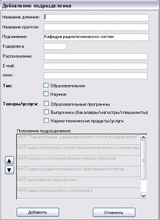<> 0)) Then= myRec! [ID подразделения]myRec = myDb. OpenRecordset («SELECT [ID подразделения] FROM [Подразделения] WHERE [ID подразделения] =» &