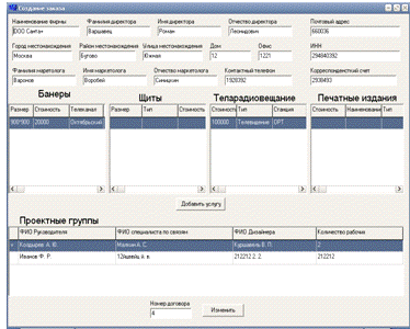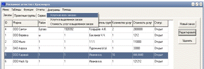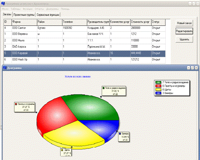 «Диаграмма» (Рис.47) в которой будет информация об услугах в выбранном заказе.