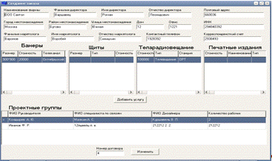 (проектные группы, заказы, услуги), далее была разработана структура ПО и