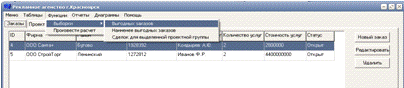 При использовании функции « Услуги в выделенном заказе» (Рис.46) появится