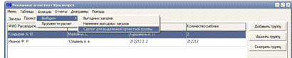 (Рис.36 и Рис.38) программа выдает список заказов для той группы, которую мы