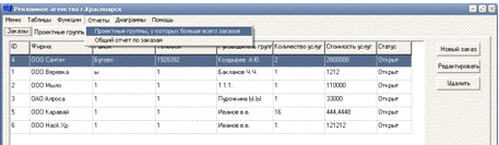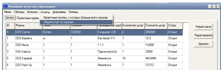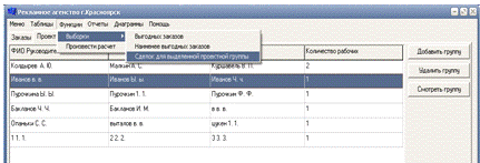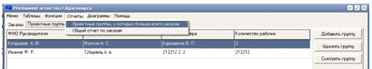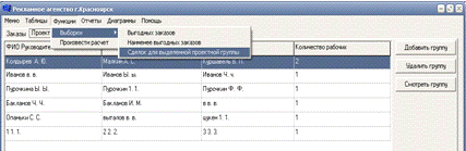 заказов» программа выдаст группу, у которой больше всего проектов в нашем