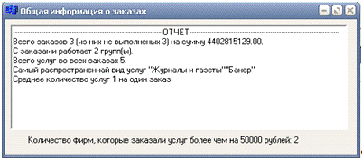 При использовании функции « Общий отчет по заказам» (Рис.42) появится