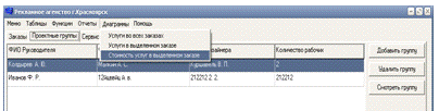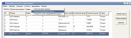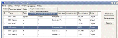 При нажатии кнопки « Диаграммы > Услуги в выделенном заказе » (Рис.26)