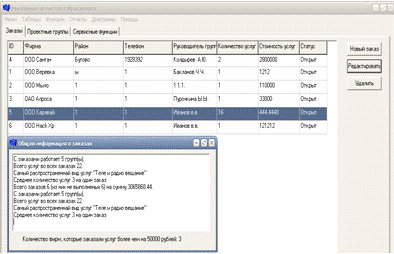 окно, в котором будет общая информация о заказах (Рис.43). Чтобы удостовериться