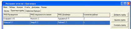 группы, заказы, смотреть какая проектная группа отвечает за определенный заказ,