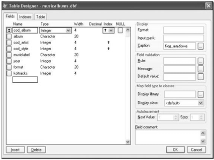 таблицами. Также в базе данных «Справочник Меломана» используются поисковые