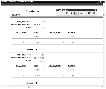 Рис.4 Поиск песни по коду трекам(Отчет с