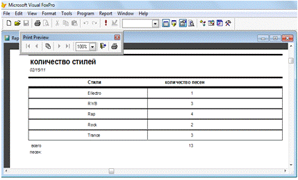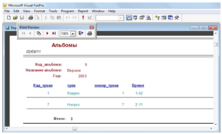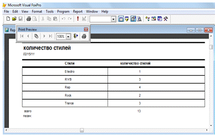 отчетов к ней в СУБД FoxPro. Все вышеперечисленные компоненты были созданы с