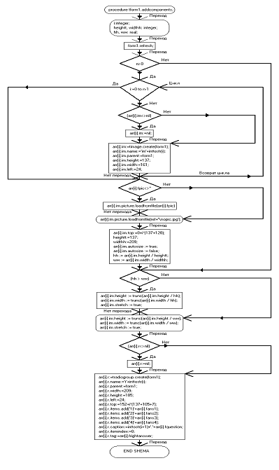 arr[i].r:=nil;[i].r:=TRadioGroup.Create(Form1);[i].r.Name:='r'+inttostr(i);[i].r.Parent:=Form1;[i].r.Width:=209;[i].r.Height:=105;[i].r.Left:=24;[i].r.Top:=152+i*(137+105+7);[i].r.Items.Add('1)'+arr[i].fans1);[i].r.Items.Add('2)'+arr[i].fans2);[i].r.Items.Add('3)'+arr[i].fans3);[i].r.Items.Add('4)'+arr[i].fans4);[i].r.Caption:=inttostr(i+1)+'.'+arr[i].fquestion;[i].r.ItemIndex:=0;[i].r.Tag:=arr[i].frightanswer;;;TForm1.clearcomponents;i:integer;y:boolean;n>0