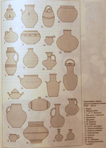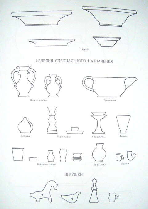 блюда, кувшины, кубышки, рукомои, печные горшки и даже кувшины-календари.