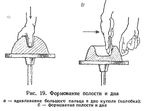 Во время вращения круга руки «ведут» от дна кверху, стараясь сблизить их,