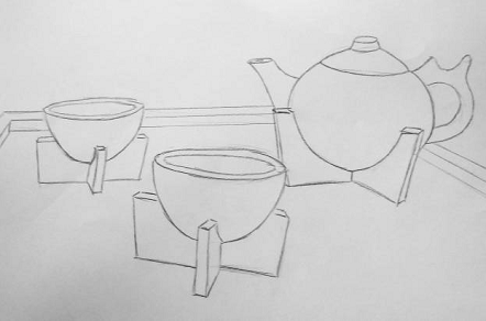 В первую очередь были изготовлены эскизы сервиза. Далее