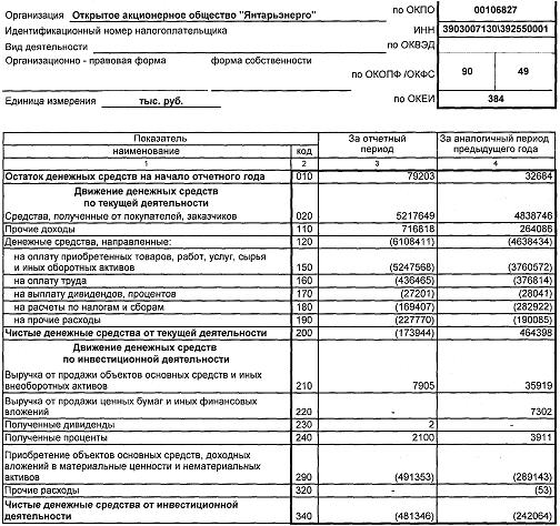 ОТЧЕТ О ДВИЖЕНИИ ДЕНЕЖНЫХ СРЕДСТВ