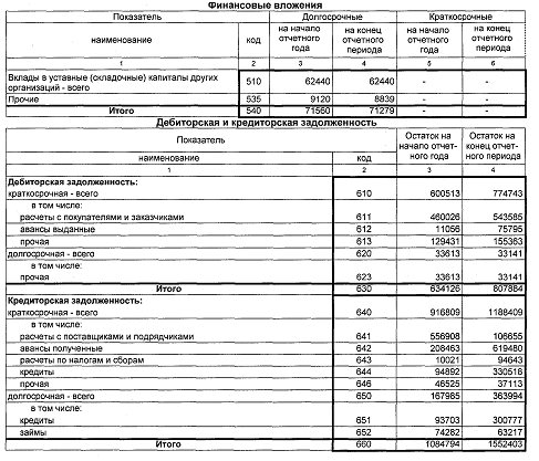 ПРИЛОЖЕНИЕ К БУХГАЛТЕРСКОМУ БАЛАНСУ