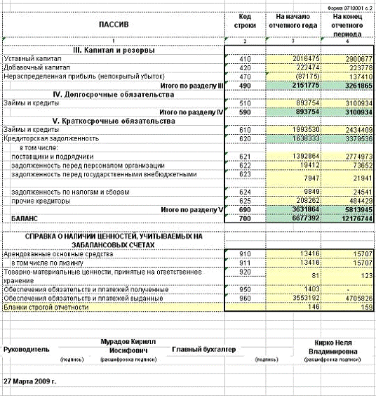 2.3 Анализ финансового положения предприятия за период 2009-2010гг.