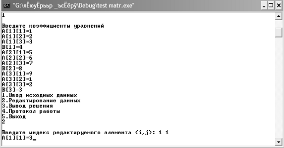 уравнений с тремя неизвестными. Алгоритм программы реализован в среде Visual C++ 6.0. Выполнены все пункты задания. В программе предусмотрена