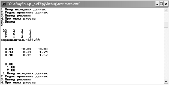 При выборе пункта меню “Вывод решения”, пользователь увидит содержимое
