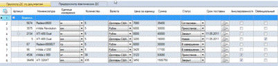 окончания, общая стоимость, отгружено, оплачено, описание.
