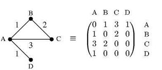 для взвешенной сети, представляет собой квадратную матрицу a размерности