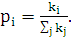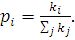 присоединяется к существующим m вершинам, согласно распределению вероятности: