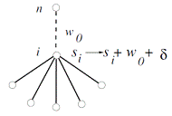 присоединяется к существующей вершине i, согласно механизму группового предпочтения: