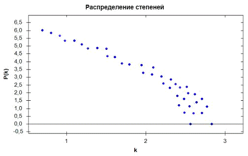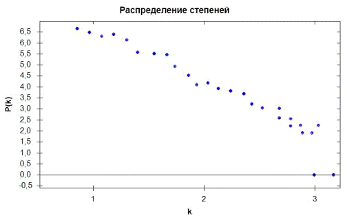 распределения степеней узлов P(k) - вероятность того, что узел i имеет степень ki = k [2].
