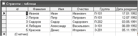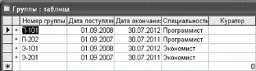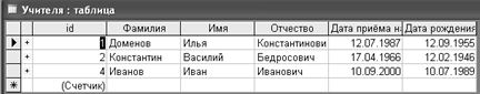 Заходим в Microsoft Office Access 2003 в БД в таблицу учителя и там появилась наша