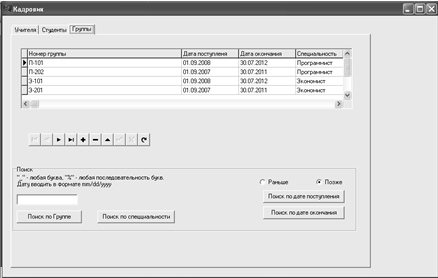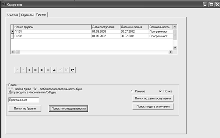 интерфейсов внутри группы программ и проверка функций группы во всех заданных