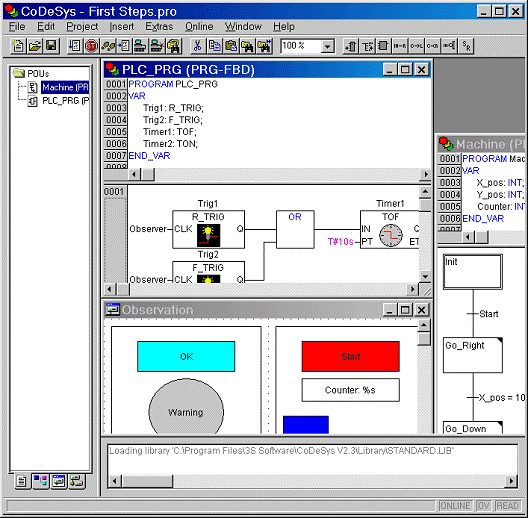 Строка статуса находится в нижней части Главного окна CoDeSys и предоставляет информацию о проекте