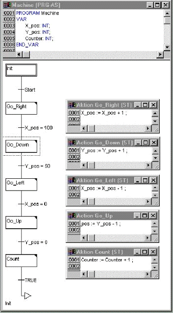 Рабочее окно находится в правой части Главного окна CoDeSys. Все