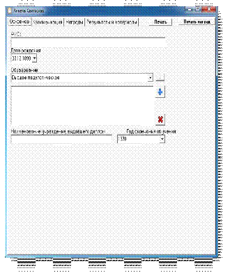 данных для работы таких как информация о себе, своей деятельности, месте работы