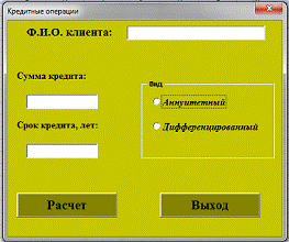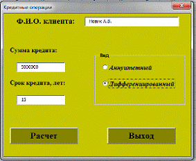 вводите информацию необходимую для расчета кредитных операций, а при нажатии