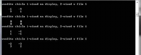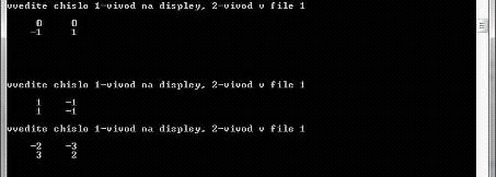 1-vivod na display, 2-vivod v file»;>>y;(y) { // выбор вывода1: {(t=i;