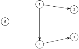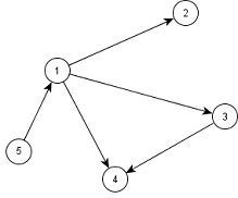 степени вершин 1,2,3,4,5 равны соответственно 0,1,1,1,0, исходящие - 2,0,0,1,0.