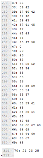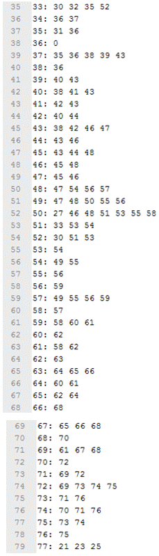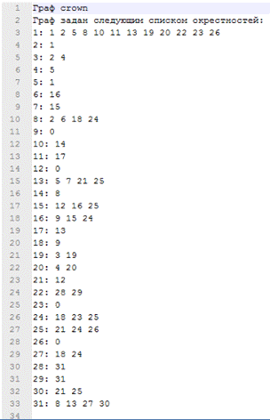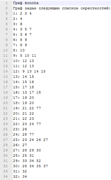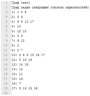 содержащего список окрестностей вершин, одного значения за один вызов.