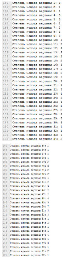 количеству входящих ребер и исходящую степень, равную количеству исходящих ребер,