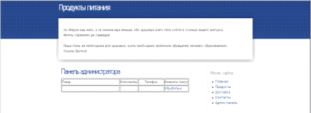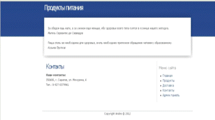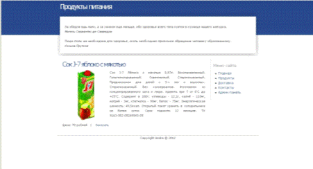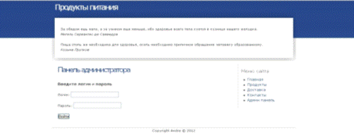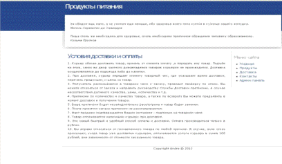 сайта магазина продуктов питания с интерактивной витриной, прайсом и