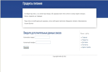 Разработка сайта магазина продуктов питания с интерактивной витриной, прайсом и возможностью выбора товара