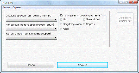 «Посмотреть заполненные»-показывает модальное окно InfoForm, содержащее информацию об анкетируемых(рисунок