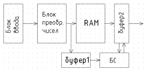 представляет собой 6 блоков: 1. Блок ввода чисел - здесь числа принимаются с