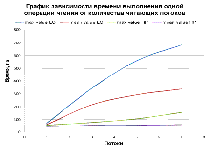 Рис. 3.4 График зависимости времени выполнения одной операции чтения от