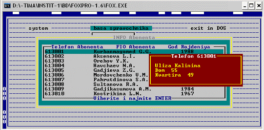 5,10 to 20,70 TITLE 'Poisk zapisi v bd' COLOR SCHEME 10WINDOW ok=RECNO ()BAR ()