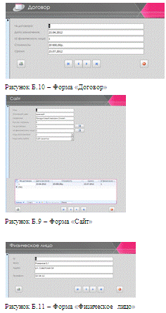 Разработанная база данных включает шесть таблиц: сайт, договор,