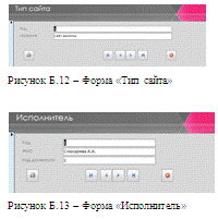 физическое лицо, тип сайта, исполнитель, должность, формы, составленные на