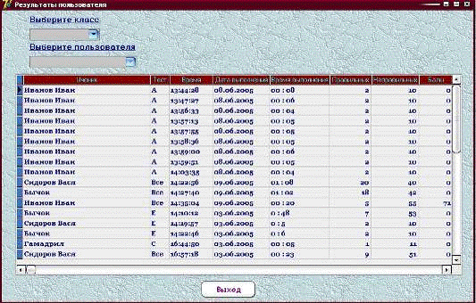 После завершения теста результаты заносятся в базу данных. Чтобы их посмотреть,