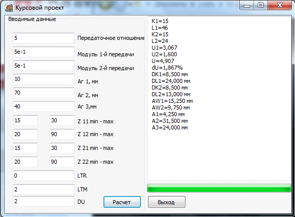 программы расчета двухступенчатого рядного механизма при габаритных