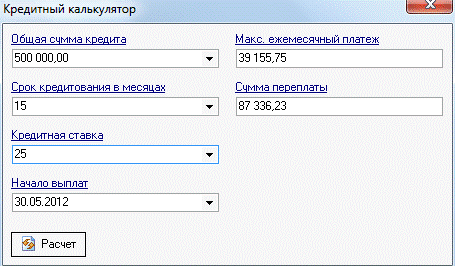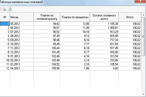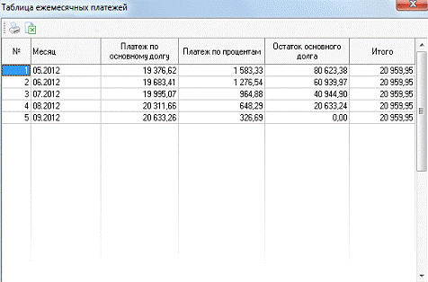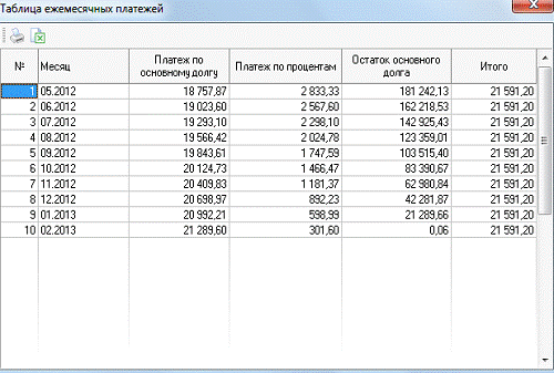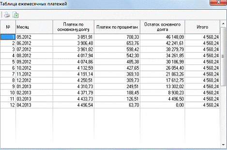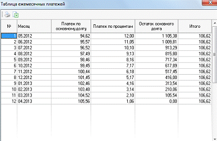 дающий возможность рассчитывать ежемесячные платежи, платежи по процентам,