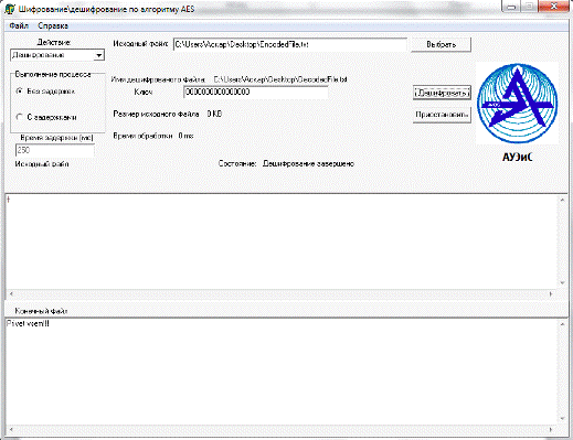 (Stop - Start) + ' ms';;. Free;;. Free;;;CBOpt. Text = «Дешифрование» then
